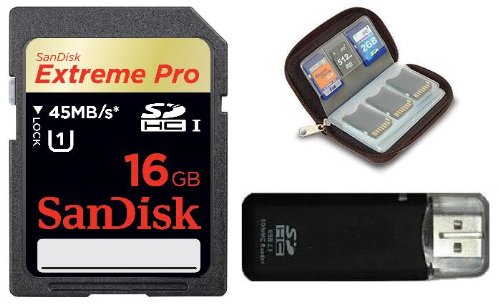 SanDisk 16GB Extreme Pro - SDHC - UHS Speed Class 1 - High Performance Memory Card - NEW 45MB/s Version - Bonus Pack Includes High Speed SD SDHC Reader & Memory Card Wallet Feature